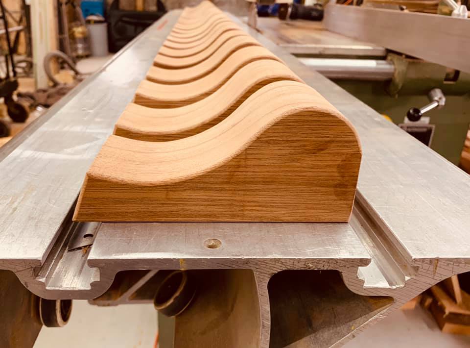 De makelaar en boeidelen zijn handmatig gemaakt dfoor Mark van Woodpecker Timmerwerken.